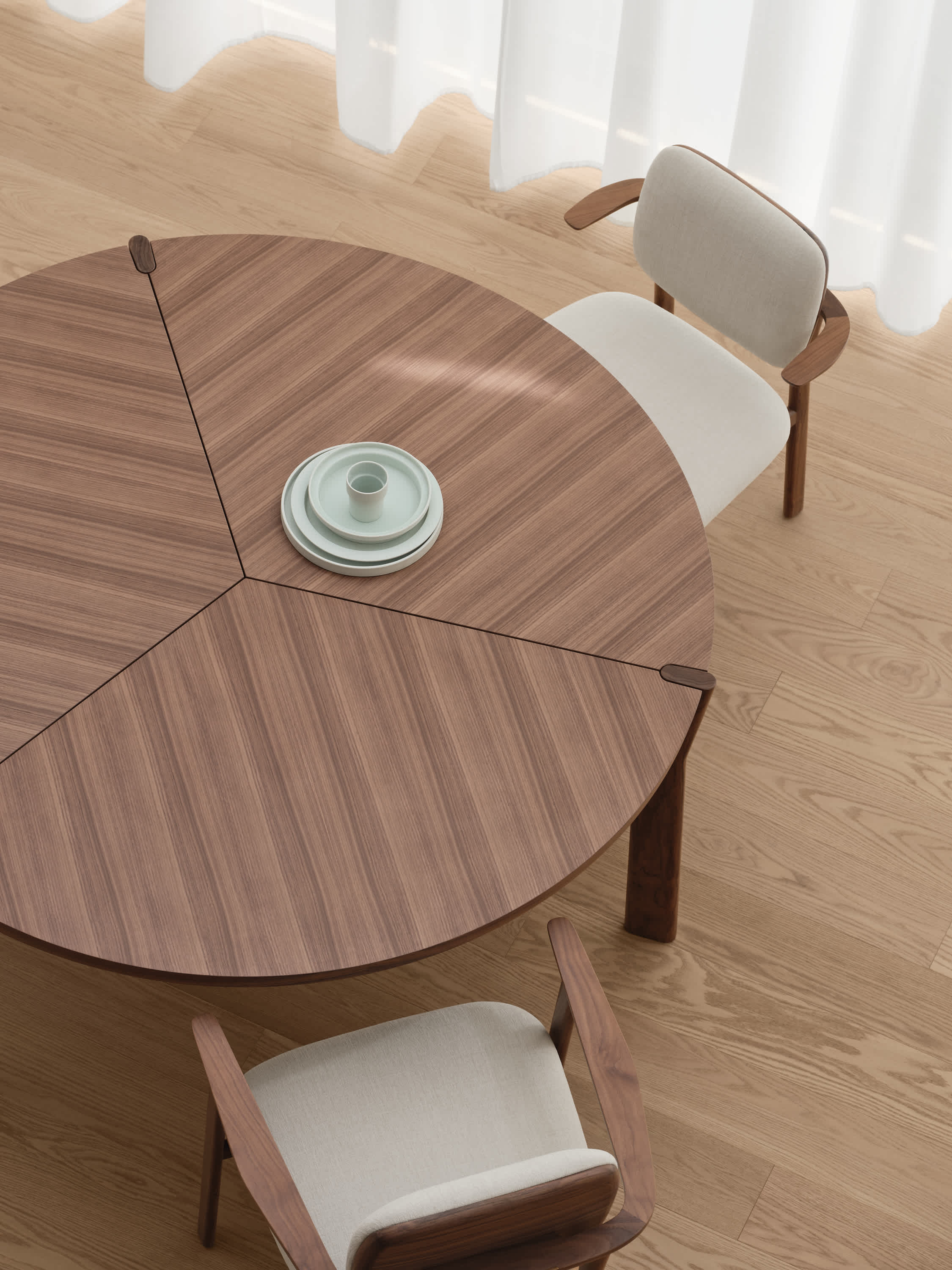 The wooden profiles are more than structural—they are poetic. Subtle curves and clean lines flow harmoniously, while floating seat designs and thoughtfully integrated details, like metal back handles, add a sense of lightness and sophistication. By blending traditional woodworking techniques with innovative methods, the collection celebrates craftsmanship and durability.