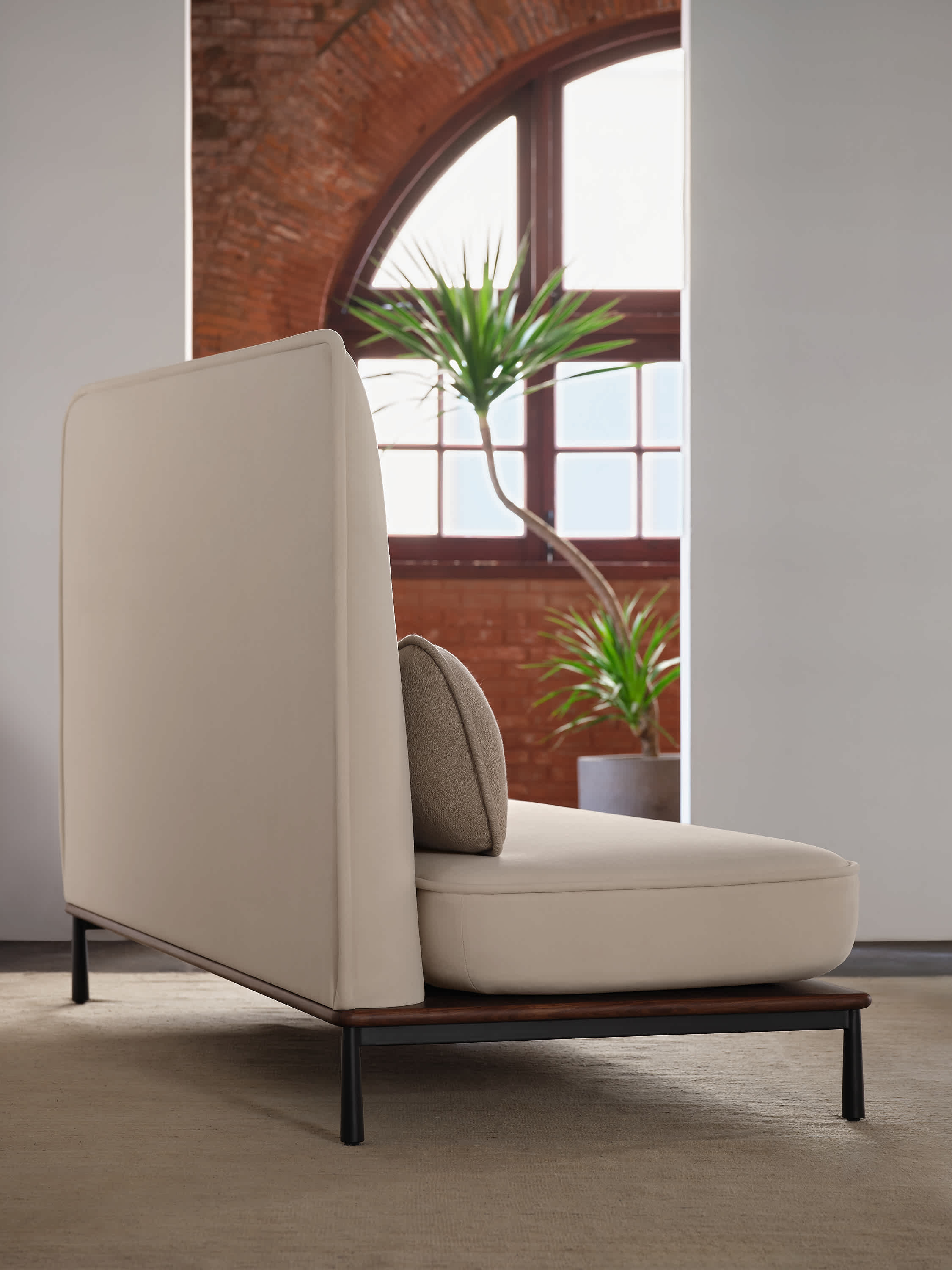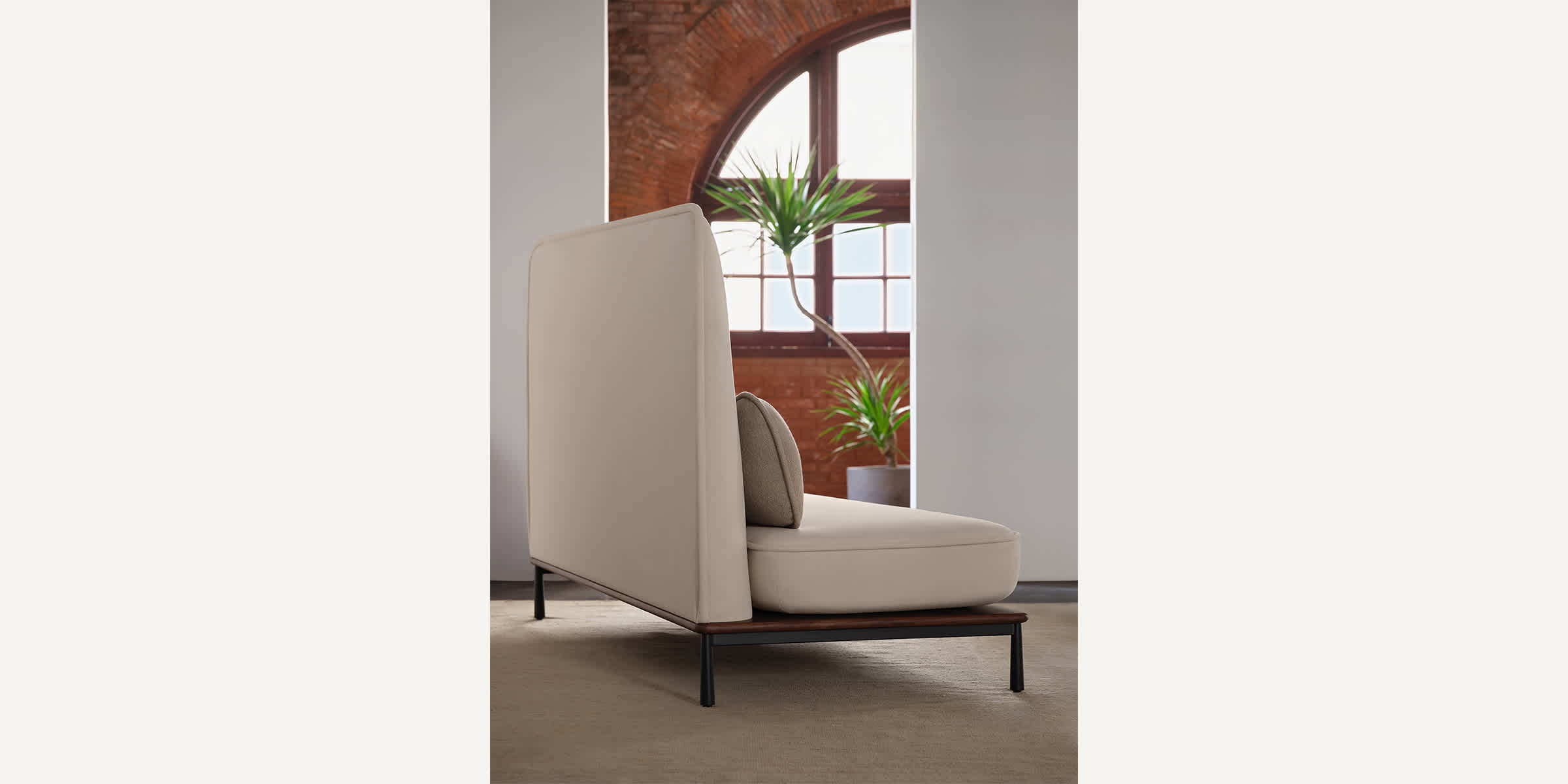 The Arc collection is designed to meet the demands of modern workspaces, providing a sense of shelter that evokes the comfort of home. Its distinct character sets it apart from conventional contract furniture, with a soft silhouette that enhances its recognizable identity. A thick seam defines the edge, creating a contrast between the rigid exterior and the inviting, sculpted interior.