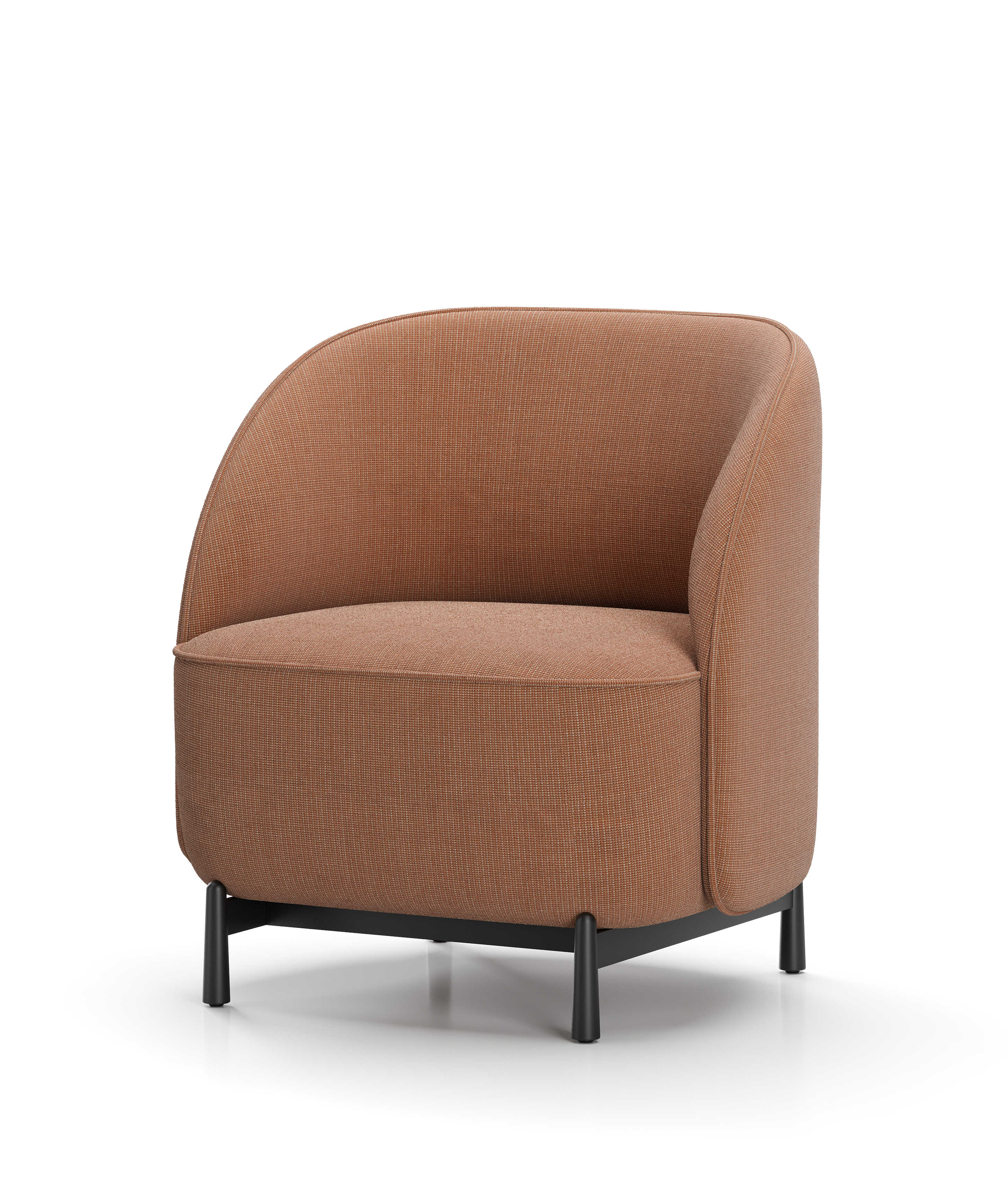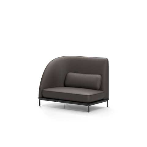 The Arc collection is designed to meet the demands of modern workspaces, providing a sense of shelter that evokes the comfort of home. Its distinct character sets it apart from conventional contract furniture, with a soft silhouette that enhances its recognizable identity. A thick seam defines the edge, creating a contrast between the rigid exterior and the inviting, sculpted interior.