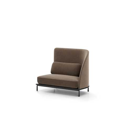 The Arc collection is designed to meet the demands of modern workspaces, providing a sense of shelter that evokes the comfort of home. Its distinct character sets it apart from conventional contract furniture, with a soft silhouette that enhances its recognizable identity. A thick seam defines the edge, creating a contrast between the rigid exterior and the inviting, sculpted interior.