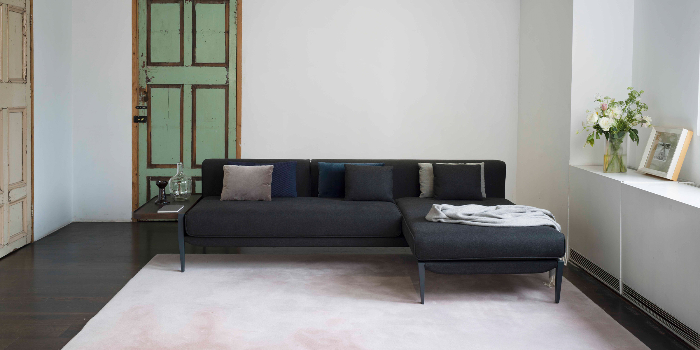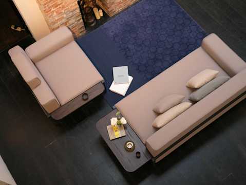 The Float collection comes in four versions: a one, two and three-seater sofa, as well as an L-shaped option. The collection is modular and the individual components are designed to be combined in a multitude of comfortable configurations. The Float Sofa system can be further customised with a range of accessories, including a backseat, headrest and a series of pillows that can be arranged in different layouts to give the sofa a different look and function. Float is also available with optional built-in wooden sides tables, which come in two sizes, an ancestral element that De Lucchi sees as inextricably linked to the idea of the home and of handmade construction.