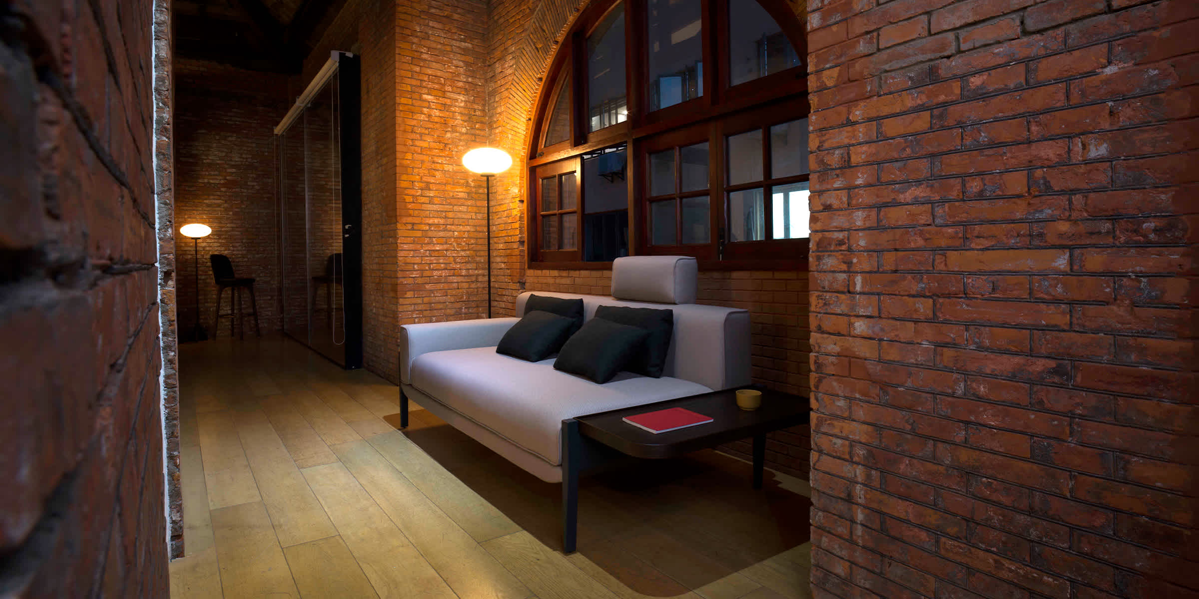 Float is a new modular sofa system that presents cushions supported by a seemingly invisible structure, as if they are floating on air. The magical effect created by these floating cushions is made possible by the arrangement of feet outside of the padded form. A double layer of cushions, supported by a metallic sheet, provides optimal comfort and strength, while a crossbar that runs back and sideways containing the cushions, supports the headrest elements and gives structural integrity. The Float sofa is supported by a thin yet robust steel structure and is designed to allow for comfortable sitting, resting and invites users to “flop down” on it.