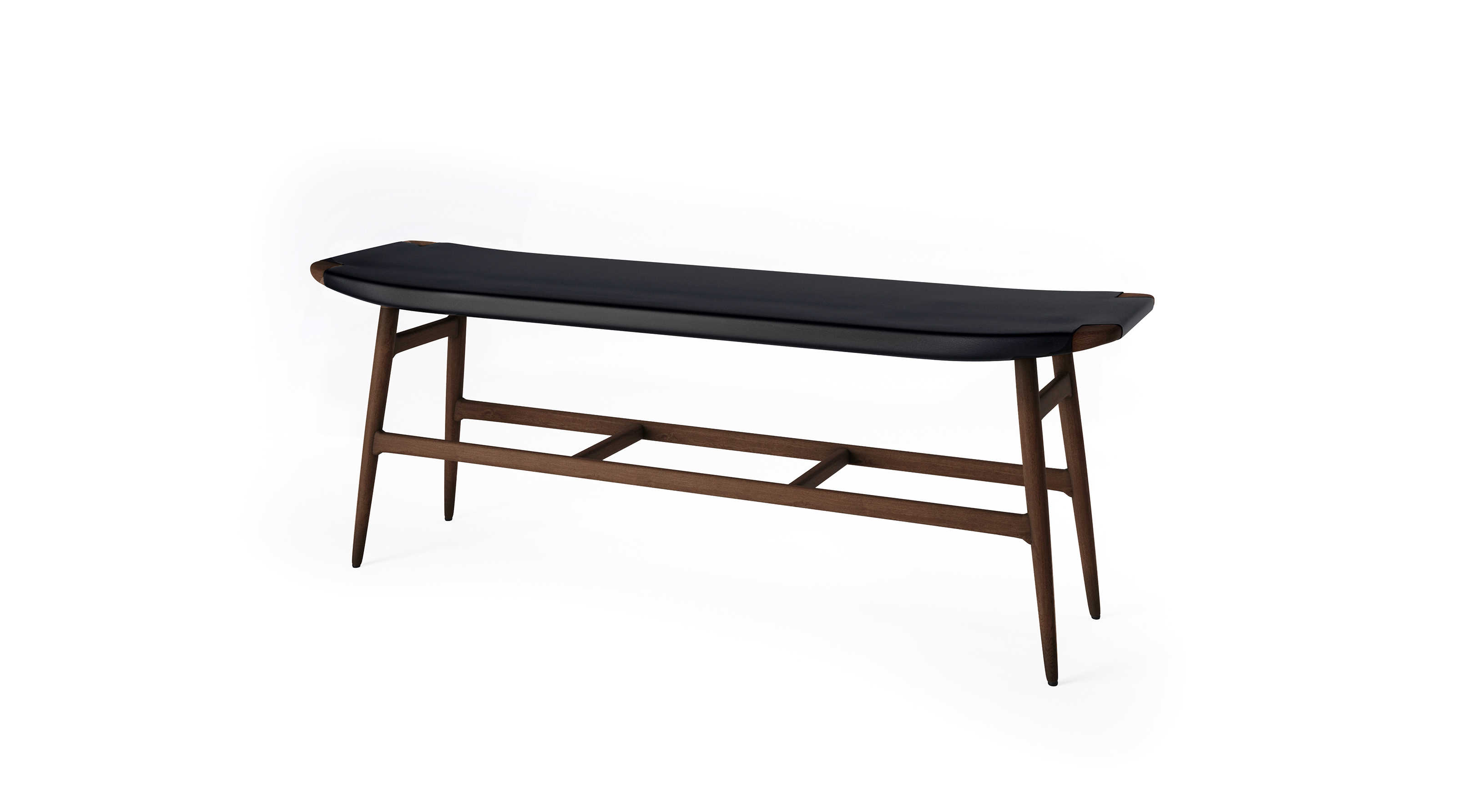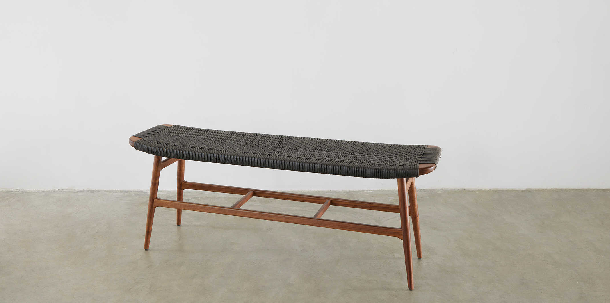 Freja is a collection of stools and bench that comes out of a wish to create sculptural furniture with the soothing visual appeal of Scandinavian furniture making traditions and a Japanese mode of expression. The archetypal furniture making principles of static and ornament converge to give Freja its elegant, yet simple character. Seen from different angles legs and aprons optically interweave to form a trellis, the seat floating lightly with either woven paper cord or leather as only decorative feature.