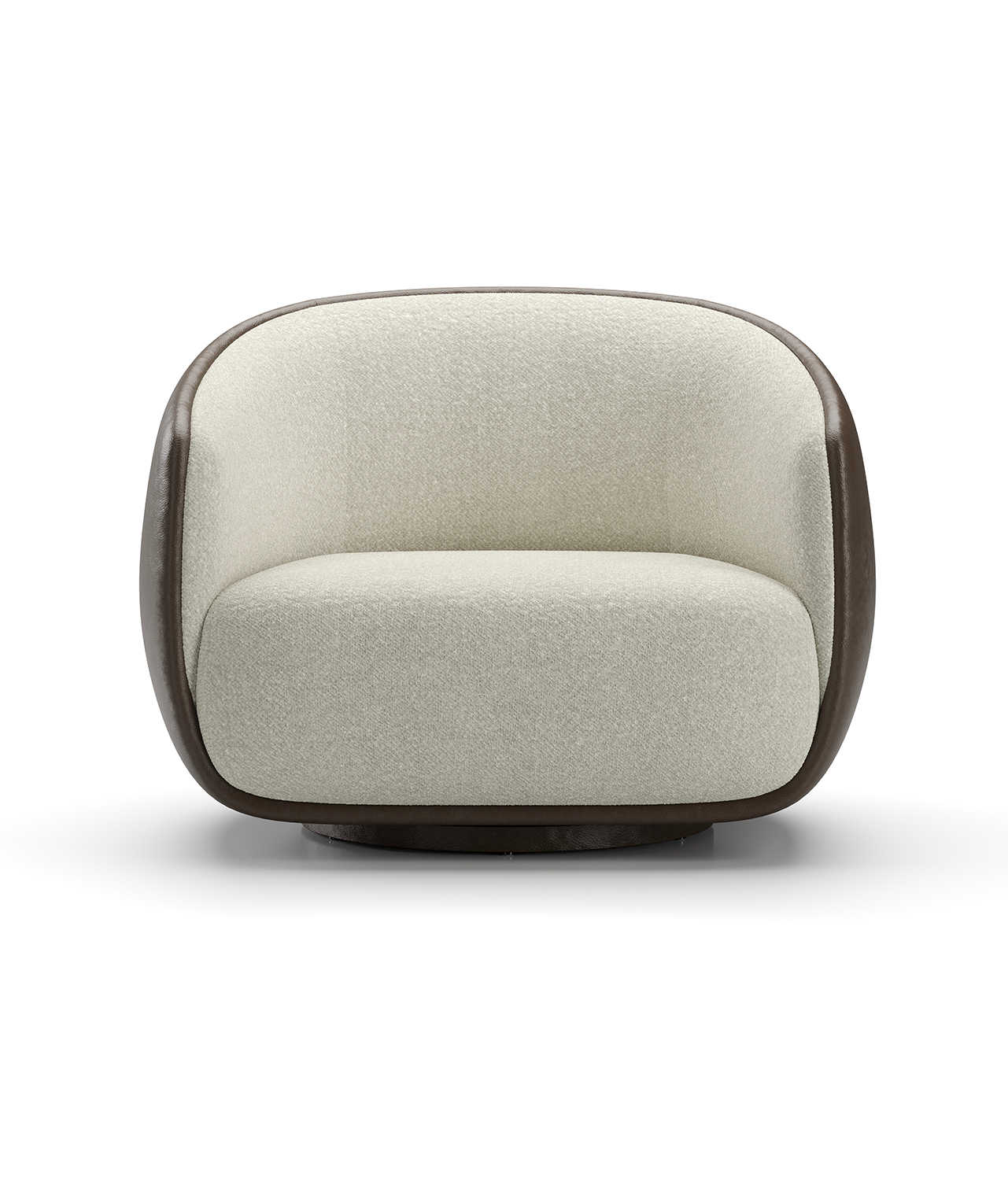 The Pesca Collection, embodies a perfect fusion of artistry and contemporary elegance. Inspired by the soft, organic curves of a peach, each piece celebrates the beauty of natural forms, exceptional craftsmanship, and timeless design. Fluid lines, precise stitching, and sculptural silhouettes converge to create a collection where artistry and functionality coexist in seamless harmony. The addition of a swivel base introduces a dynamic element, allowing each piece to effortlessly adapt to its surroundings.