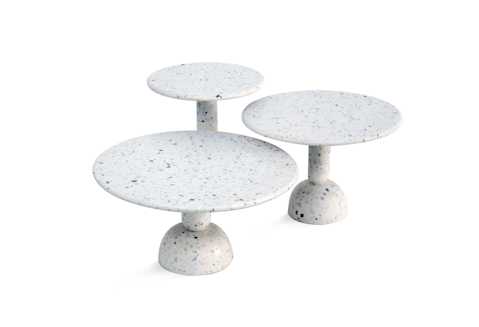 Available in three sophisticated terrazzo combinations - ice rice white, color gold, and carbon black - the Taiko side tables seamlessly combine form and function. The Taiko side tables stand as a testament to the successful fusion of innovation and functionality in contemporary furniture design.