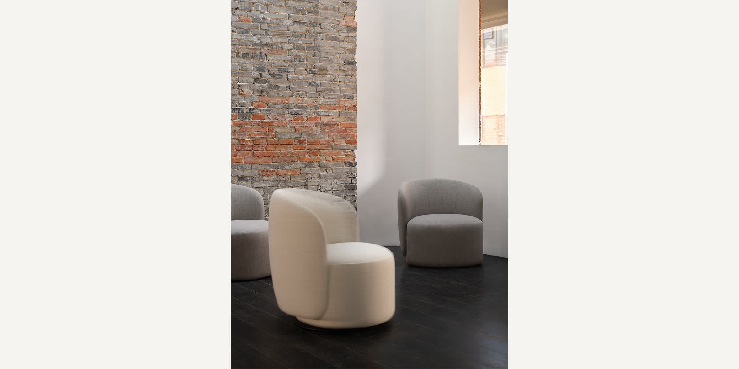 MATERIAL Solid wood plywood frame, Upholstery, Steel automatic reset 180° turntable *Please refer to website or contact your local representative for complete material swatches.